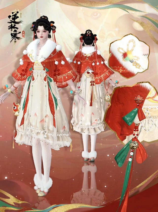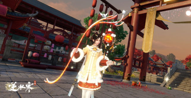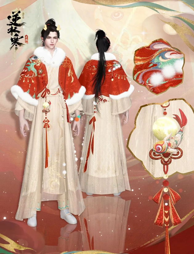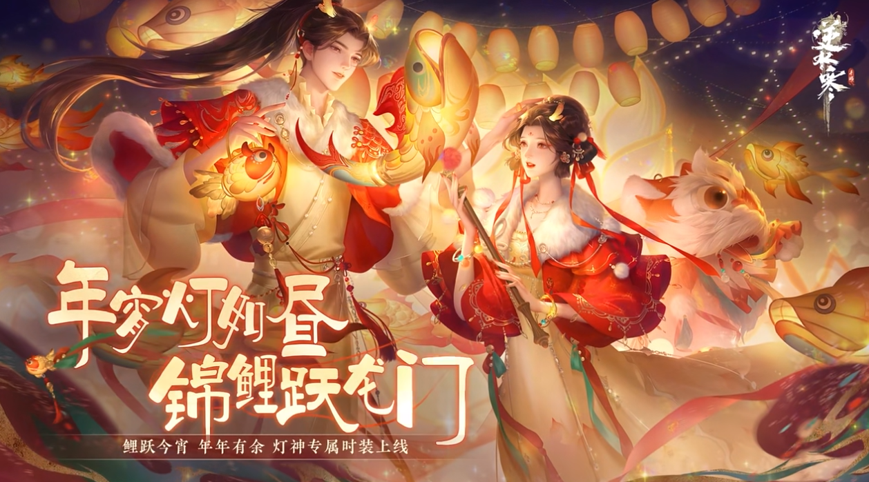 不仅如此,游戏里,还有一套以非遗灯彩文化为灵感设计了一套龙年限定时装“鲤跃今宵”!