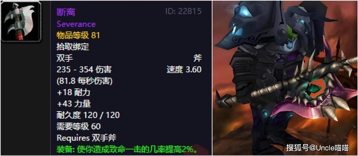 虽然喵叔远古地球时代喵叔不曾拥有过断离,但是巫妖王之怒版本重置后的他,我狂暴战倒是双持过。当然他在60版本存在的意义,就是兽人专属了。不夸张的说兽人战士拿断离单体BOSS的输出,堪称恐怖如斯直戳天花板水准。不知道各位兄弟是否用过他?