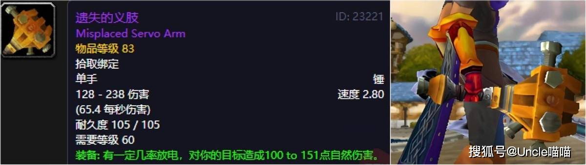 既然是说武器,那么小怪的电锤就着实经典可人了,这里喵叔就要考一考各位大兄弟了,什么种族哪个职业拿遗失的义肢,收益最恐怖如斯呢?