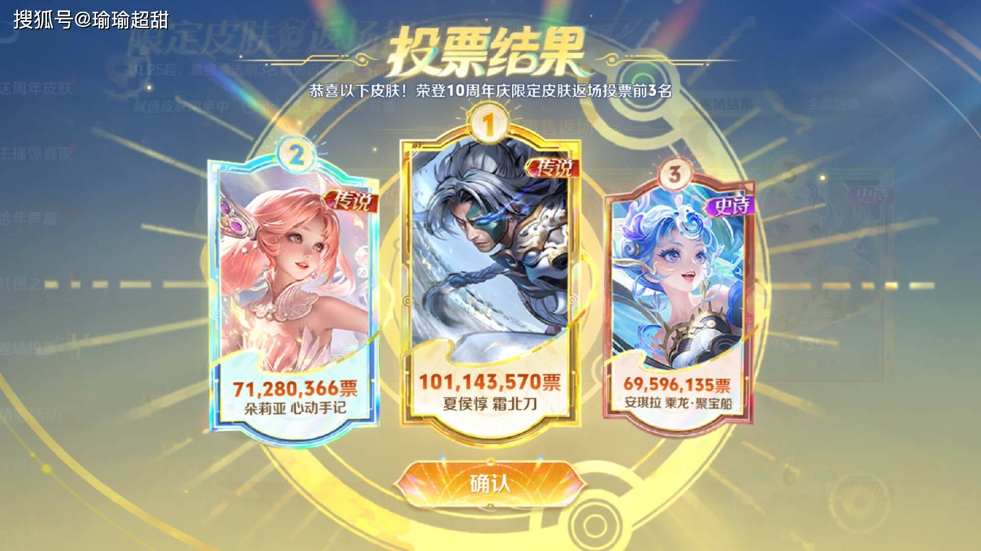 投票的最终结果,相信很多玩家应该都已经看了,不过票数超过一个亿的只有一款,那就是夏侯惇的霜北刀,这款皮肤实至名归。