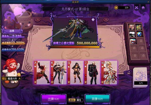 3、拿到手镯就开刷,将手上不是同花顺的牌弃了(下图红圈中的),重复弃,把弃牌次数用完,然后把剩的那一把同花顺打出去,没有打不死的