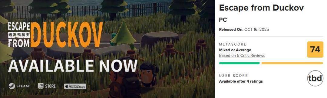 《逃离鸭科夫》M站均分74:价格亲民玩法重复性高!