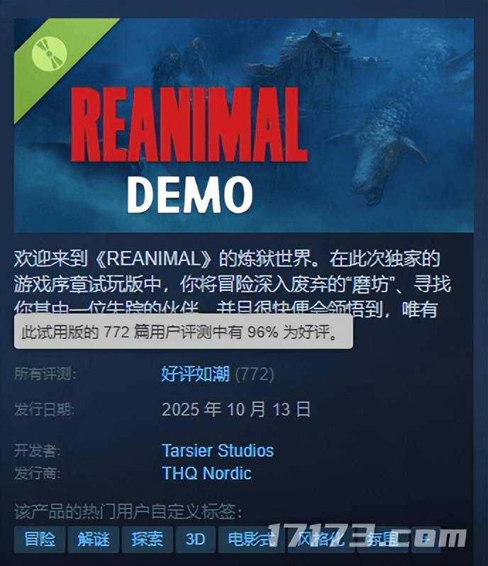 没时间为《小小梦魇3》的死哀悼了,就在10月14日,《小小梦魇》系列的原班团队在Steam上开放了其新作《REANIMAL》的免费试玩Demo,试玩一上线就收获了玩家96%的好评。