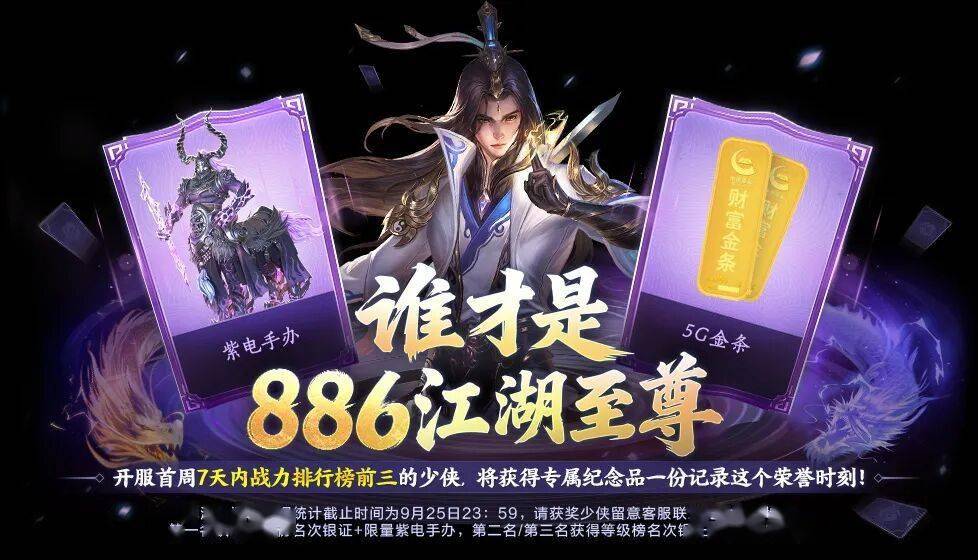 而对于那些志在问鼎江湖的顶尖高手,微信886服和微信888服还将开启江湖至尊。微信886服与888服各自战力排行榜前三名的少侠,除了会获得天龙专属纪念品一份(第一名将获得紫电手办,第二名、第三名将获得龙吟手办),更有5g金条夺金礼参与!