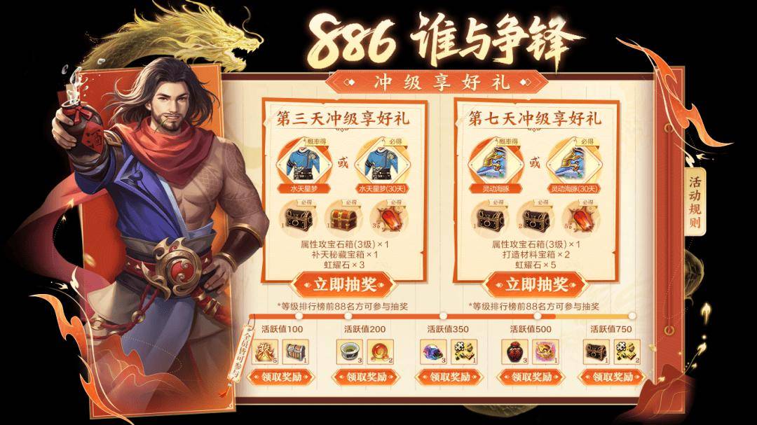 不仅如此,在新服消费也能赢好运。在微信886服、887服或888服累计消费满888元宝,即可参与每日抽奖,有机会赢取88元免单红包!每日都有机会,好运持续放送,这波福利不容错过,静候少侠前来触发!