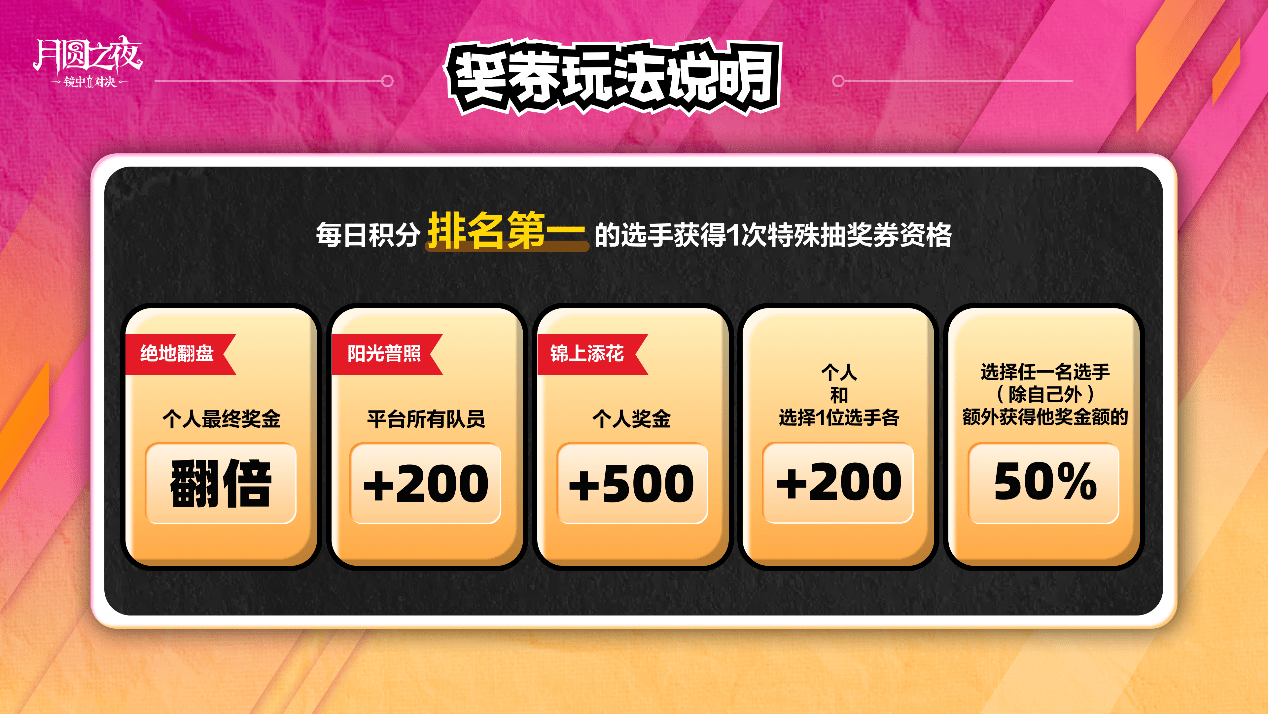 上次拍卖会意犹未尽?本次团建活动将迎来全新奖券玩法!每日积分排名第一的选手将获得一次抽特殊奖券的资格,获得神秘奖券福利,解锁特殊效果,享受冠军的荣耀!