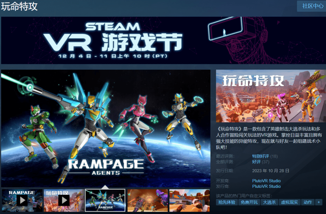 由PlutoVR Studio开发并发行的国产VR游戏《玩命特攻(Rampage Agents)》已转为免费游玩,游戏支持中文音频,现可免费添加入库。