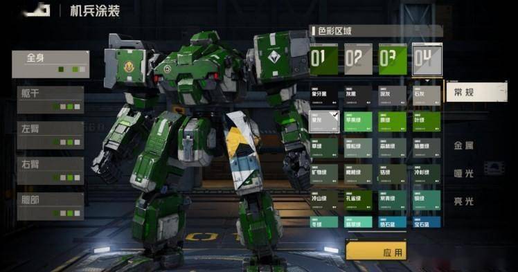 当然,玩家还可以根据自己的喜好来自定义自己机甲的外观,机甲和武器的各个部位都可以随意涂装,甚至可以为这些地方弄上各种徽标,徽标大小和位置也可由玩家自行调节。我在游戏中给主力装甲弄上了一抹我最喜欢的绿灰相间搭配,在战斗中它已然成为了战场上最靓的仔,这也令我在战斗过程中感到极大的成就感。