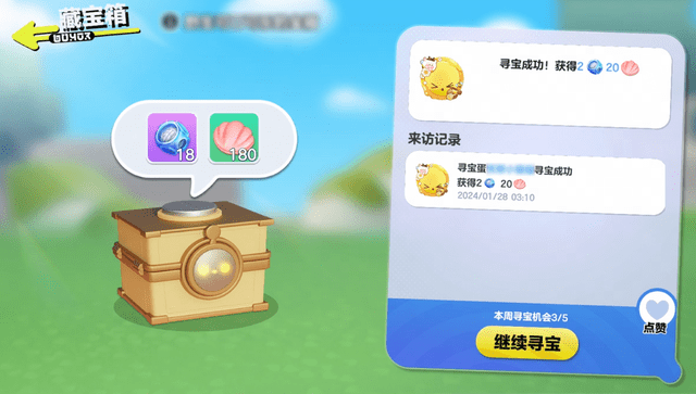 当然,在藏好自己的宝箱后,你也可以去其他蛋仔的庄园寻宝。每周日是蛋仔们的唯一外出寻宝日,每个蛋仔都有5次机会通过随机匹配,进入陌生蛋仔的庄园开始寻宝。在寻宝期间,你还有3次使用【探测】技能的机会,合理利用技能,寻宝效率将大大提升哦!