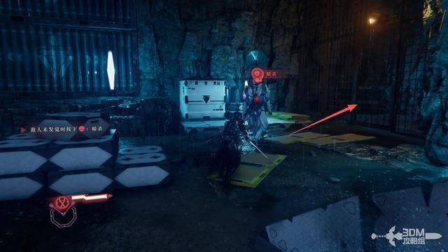 前方有个背对我们的敌人,也可以直接进行暗杀,但同时我们会被敌人发现。