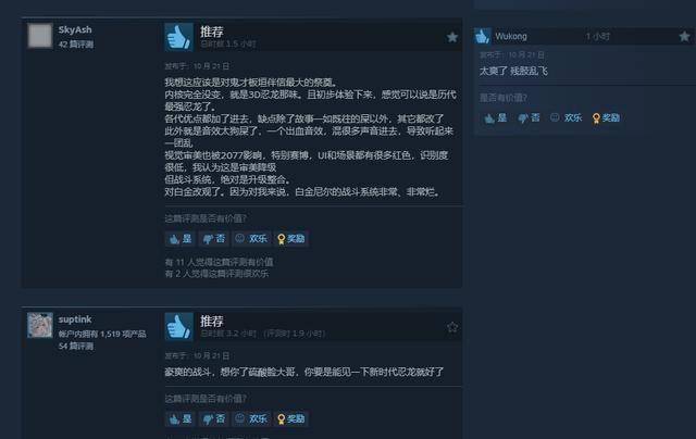 不少玩家都表示游戏很好玩,打起来很爽,战斗系统丰富而不复杂,残肢乱飞血腥味十足,完全可以竞争历代最强忍龙。