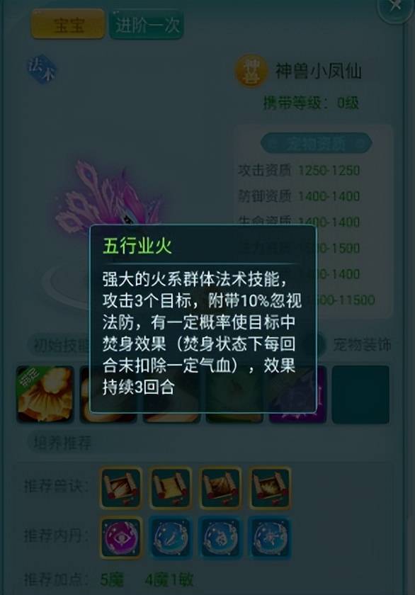 队长一般要求盒子一条龙要带法系,因此,我们首先要在法系神兽中挑选一个,作为重点培养选手。目前游戏里有小凤仙、小灵狐、兔小蝶、蛇小宝四种法系神兽,其中凤仙自带忽视10%法防,灵狐第三回合必定暴击,兔小蝶有30%几率触发特殊三段式攻击,蛇小宝附加法防-法强的临时法强进行攻击。