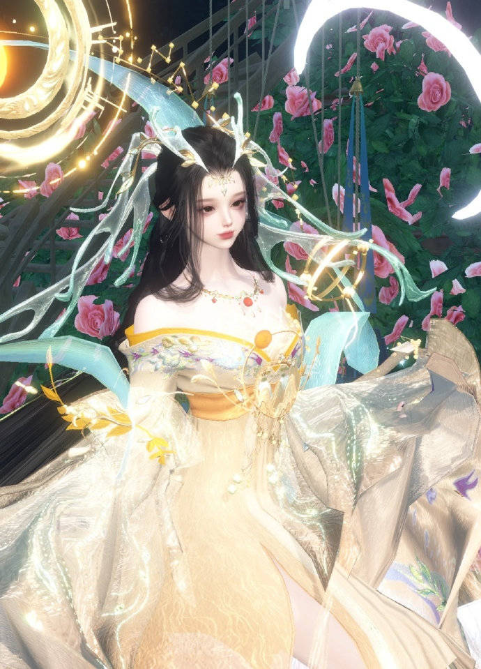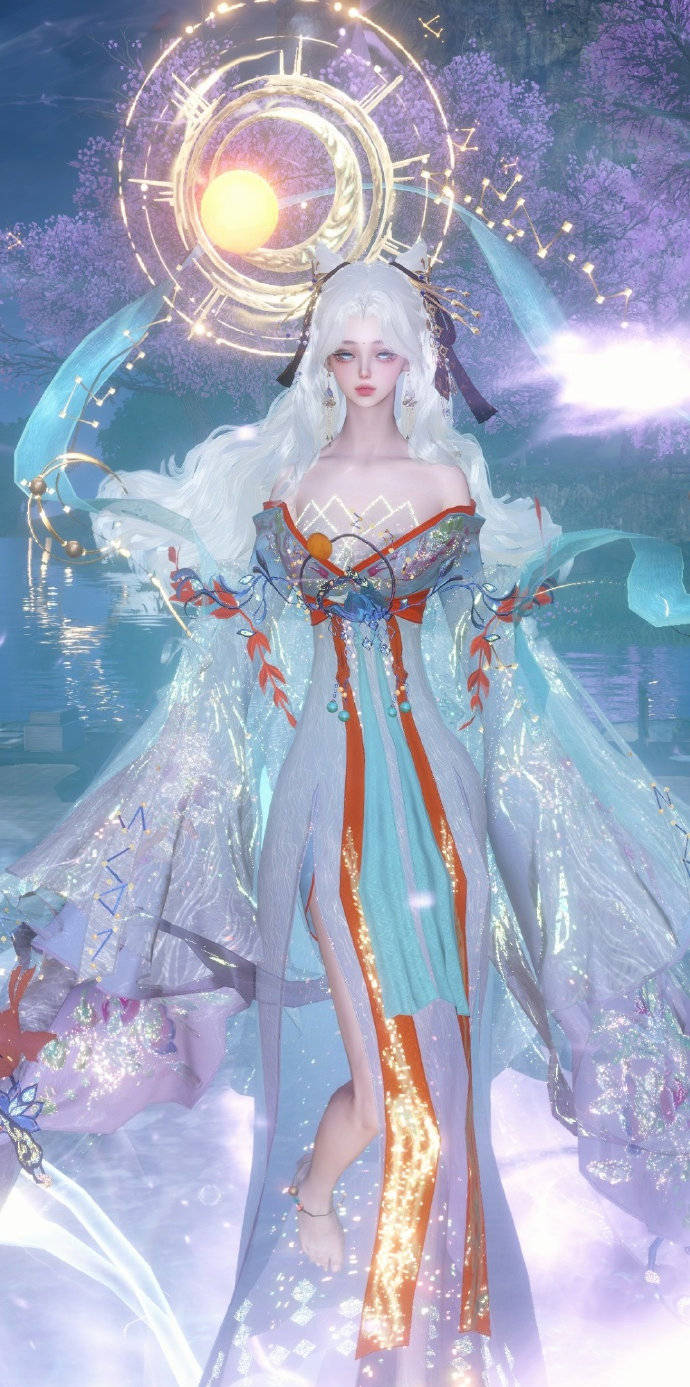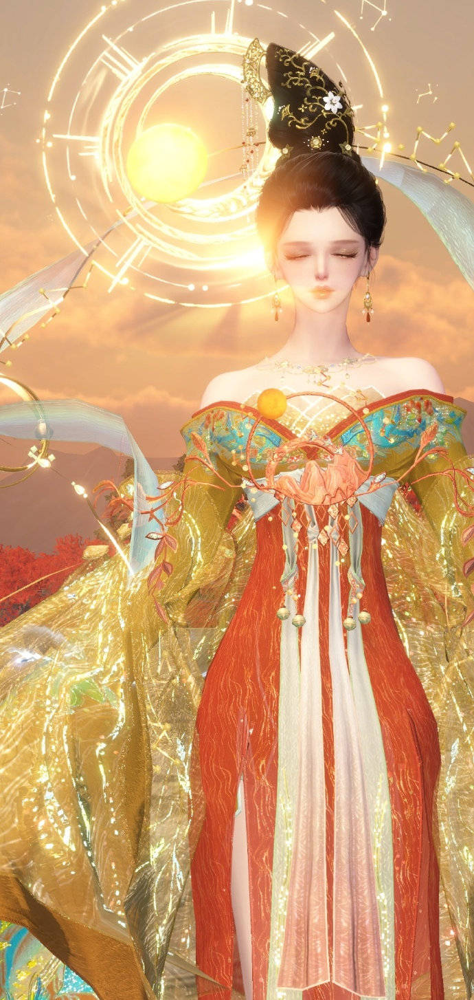 自从白泽时装上线后,玩家也开始秀各种染色,比如这位玩家的太阳神染色十分惊艳,仿佛太阳女神下凡一般,让人不由心动。