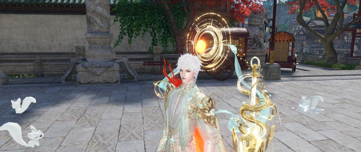 要说白泽时装最吸引人的还是自带的专属变身技能【鹿鸣】,玩家使用【鹿鸣】技能后会化身为人头鹿身的神兽形态,搭配专属祥瑞神兽白泽的单人动作特效【时简春秋】会有意想不到的惊喜。