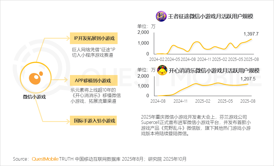 小游戏拓展:微信小游戏成为连接优质内容与广泛用户的重要载体,IP与成熟APP持续入场,平台内容日趋多元;
