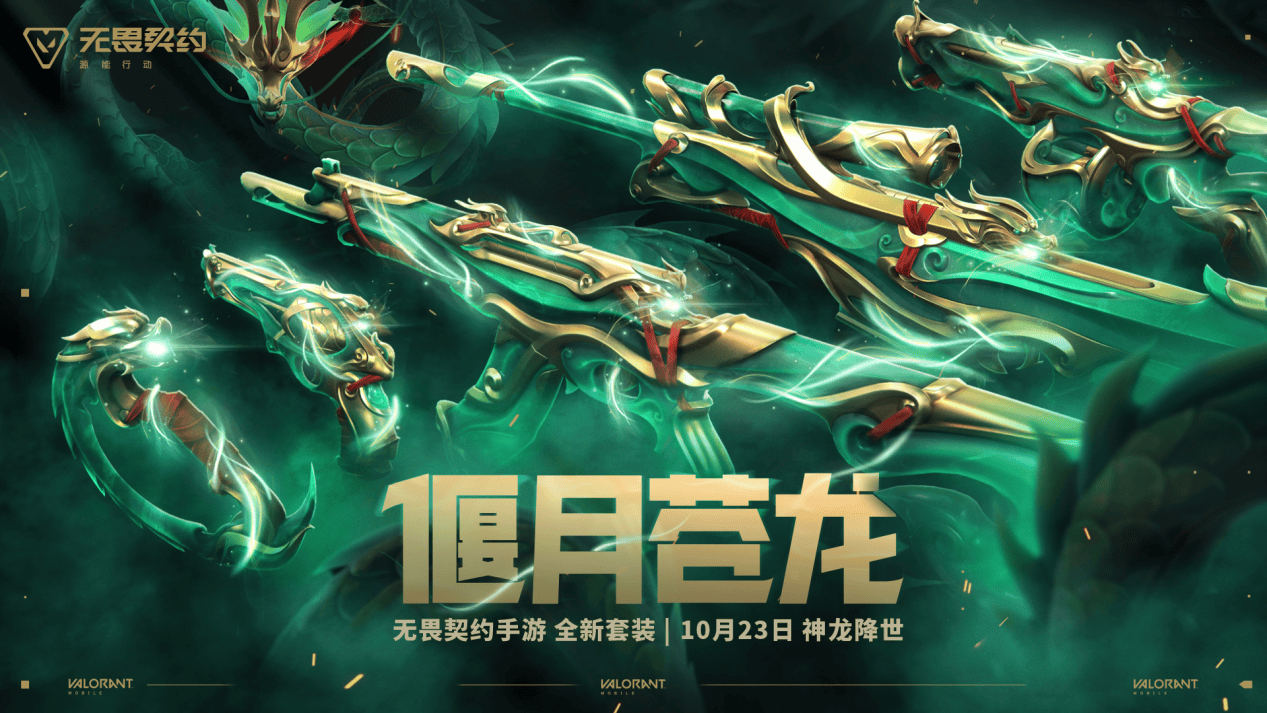 全新的中国龙主题套装“偃月苍龙”也在新版本中上架,成为国风爱好者们的最爱。该系列包含“偃月苍龙 狂徒”“偃月苍龙 正义”“偃月苍龙 判官”“偃月苍龙 冥驹”“偃月”等共计8款皮肤和道具。以龙口衔珠、红绸缎带、黯墨翡翠为主要元素设计,在攻击时还有墨绿光芒特效,尽显中国龙的威严与神秘。