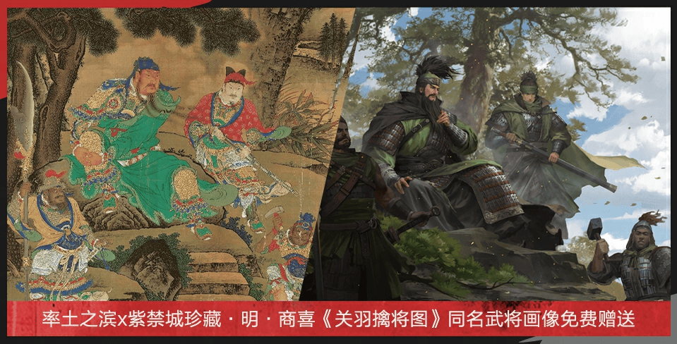 与此同时,两幅故宫典藏画像——《洛神赋图》和《关羽擒将图》首次以游戏画像的形式亮相,且完全免费回馈给玩家;联动行军外观参考了明代历史名画中“大汉将军”的服饰。