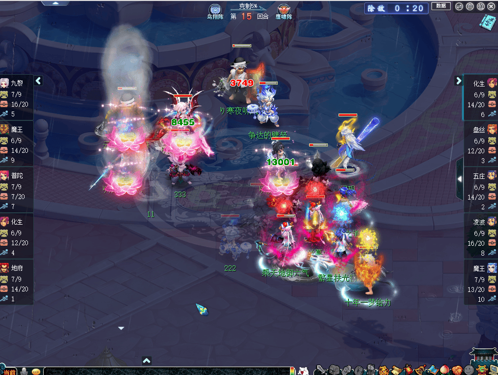 进入比赛后,夫子庙靠着开出三眼的凌波城打出了一波又一波爆炸面伤,给珍宝阁造成了巨大的面伤压力。比赛第15回合,珍宝阁不得不通过一速地府慈航的方式稳住阵线。