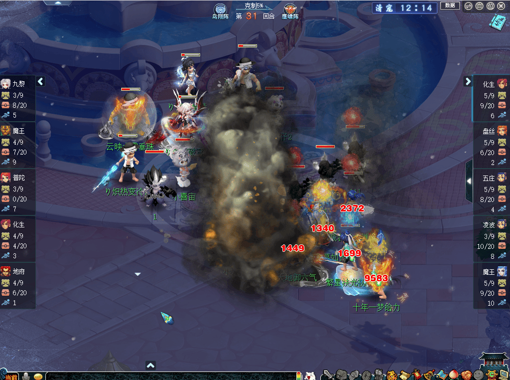 比赛第31回合,珍宝阁集中力量成功压倒夫子庙魔王寨,但由于自身血量较低的原因,差点被夫子庙凌波城团灭。从结果来看,这波互换虽然不赚,但也确实降低了面伤压力。