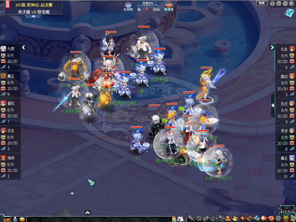 比赛45回合,夫子庙再度靠着凌波城、魔王寨的面伤打出优势。由于珍宝阁一方的药品已经消耗殆尽,并不存在任何翻盘点,只能遗憾止步八强。