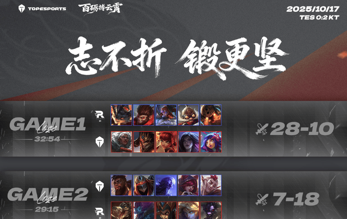 只能说TES的传统没有改变,越是看好,越能拉坨大的。KT的综合实力比起其他三支LCK战队是不足的,滔搏能被碾压零封,代表着根本无法与其他LCK战队交手,与GEN以及HLE相遇会被打的更惨。