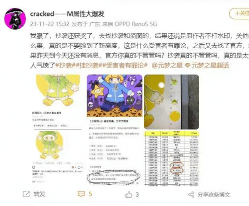 《元梦之星》游戏的照搬和洗稿问题对原创作者的权益构成了严重的侵犯,而官方的不作为使得这一问题变得更加严重。甚至在举办的同人创作赛事中,也出现了公然的抄袭行为。根据原创作者的描述,他的参赛作品被其他玩家照搬,而这两位抄袭者竟然获得了官方的奖项,而原创作者却落选了。