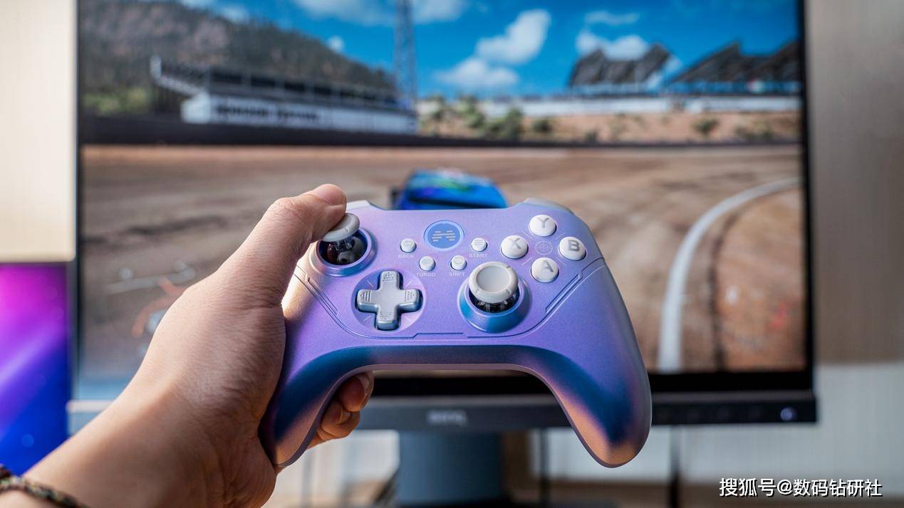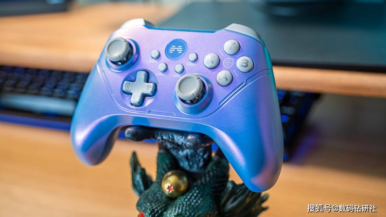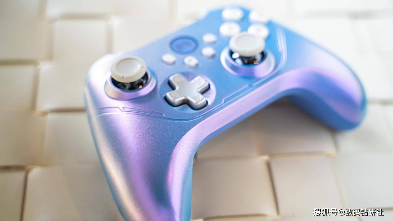 我手中的这款手柄配色名叫星云,简单来说就是一种呈现珍珠光泽的紫色。给人的感觉就仿佛是来自于宇宙深处的星云一般。它在不同的角度或者光线下,能够呈现出最多五种不同的颜色,它们交织在一起,给人一种深邃、梦幻的感觉。