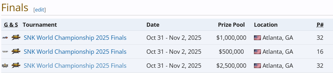 其中,由SNK官方举办的SWC 2025更是拥有前无古人的410万美元总奖池——《拳皇15》冠军可独得50万美元,《饿狼传说:群狼之城》冠军奖金更是来到了150万美元之巨……如果能够拿下其中任意一者,小孩就将超越“百万美金先生”Kakeru,成为格斗电竞史上获得奖金最多的职业选手。