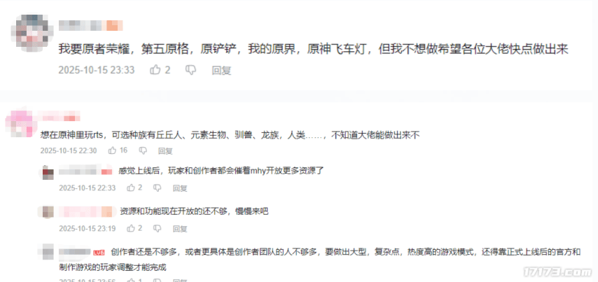 今后,官方没实现的脑洞,玩家大可直奔创作者评论区“许愿”。