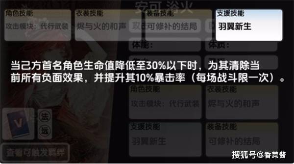 效果:立即清除该角色所有负面状态,并提升10%暴击率。