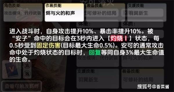 续航机制:安可攻击处于灼烧状态的目标时,回复自身3%最大生命值。