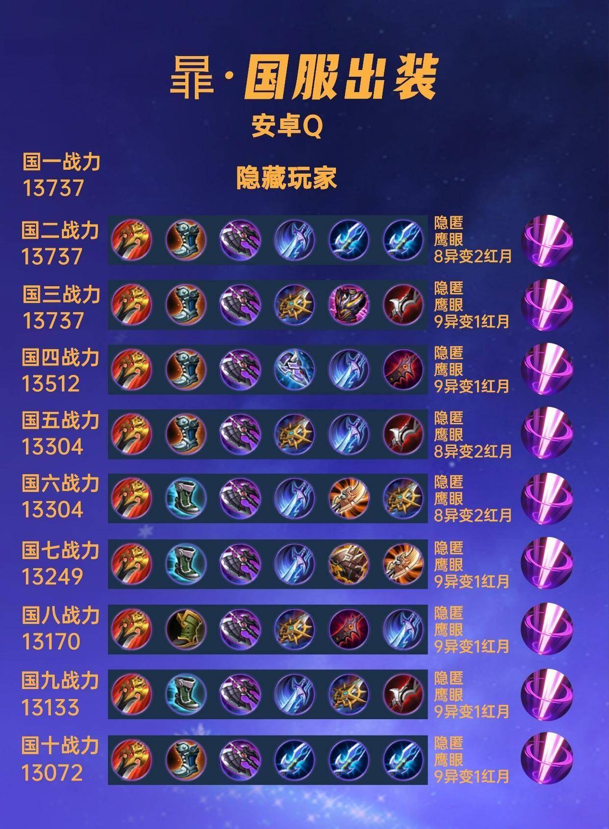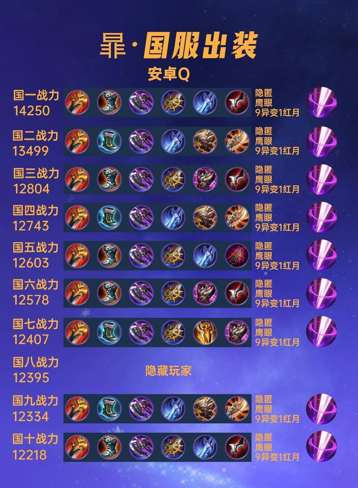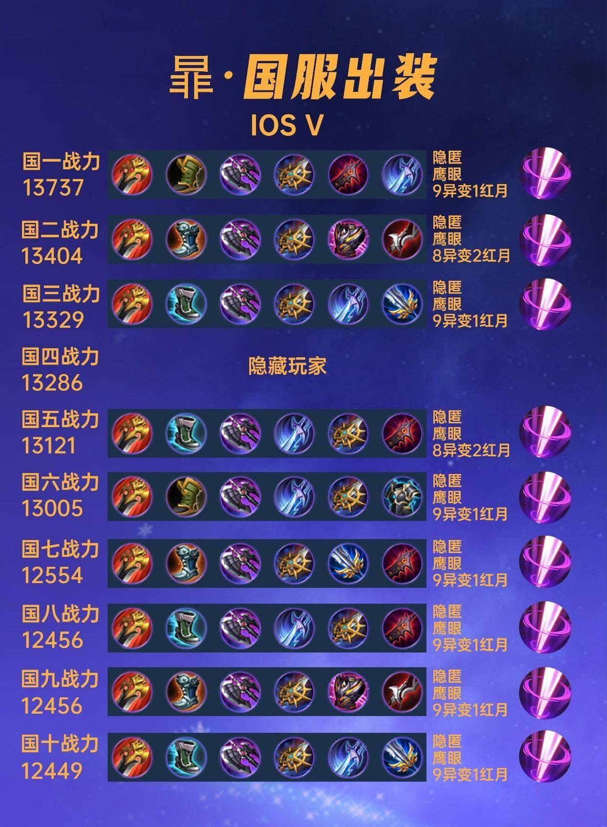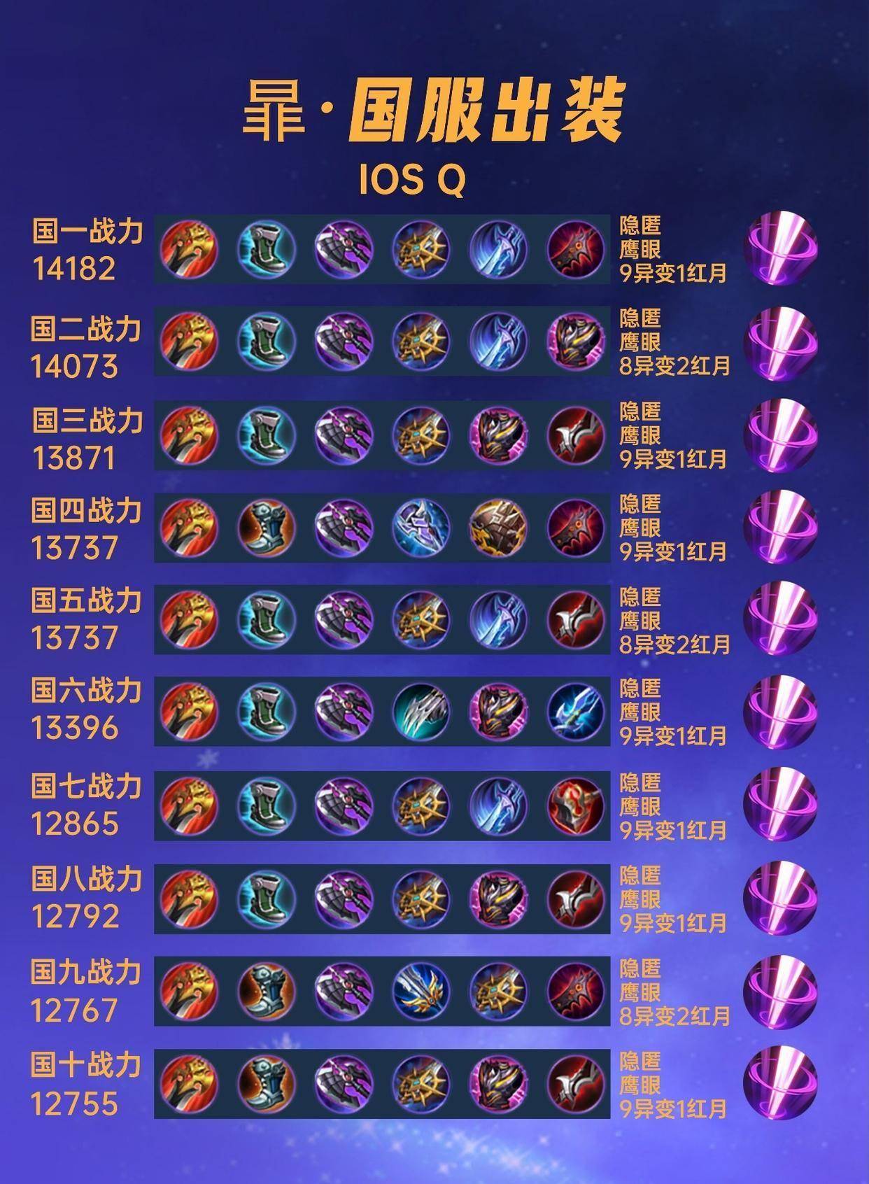 这一篇文章我们来看一下40位国服暃的出装铭文汇总。
