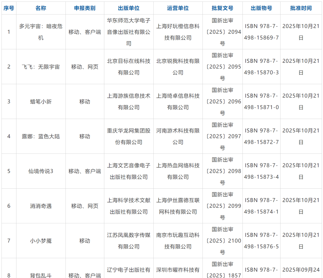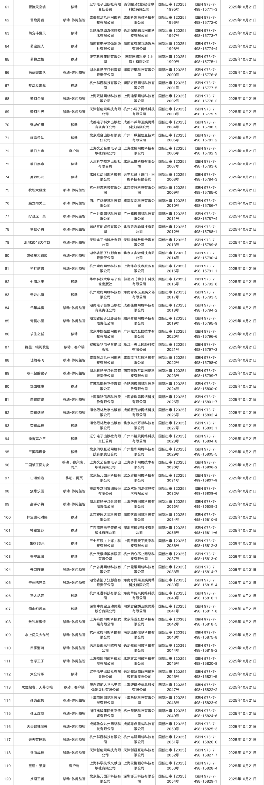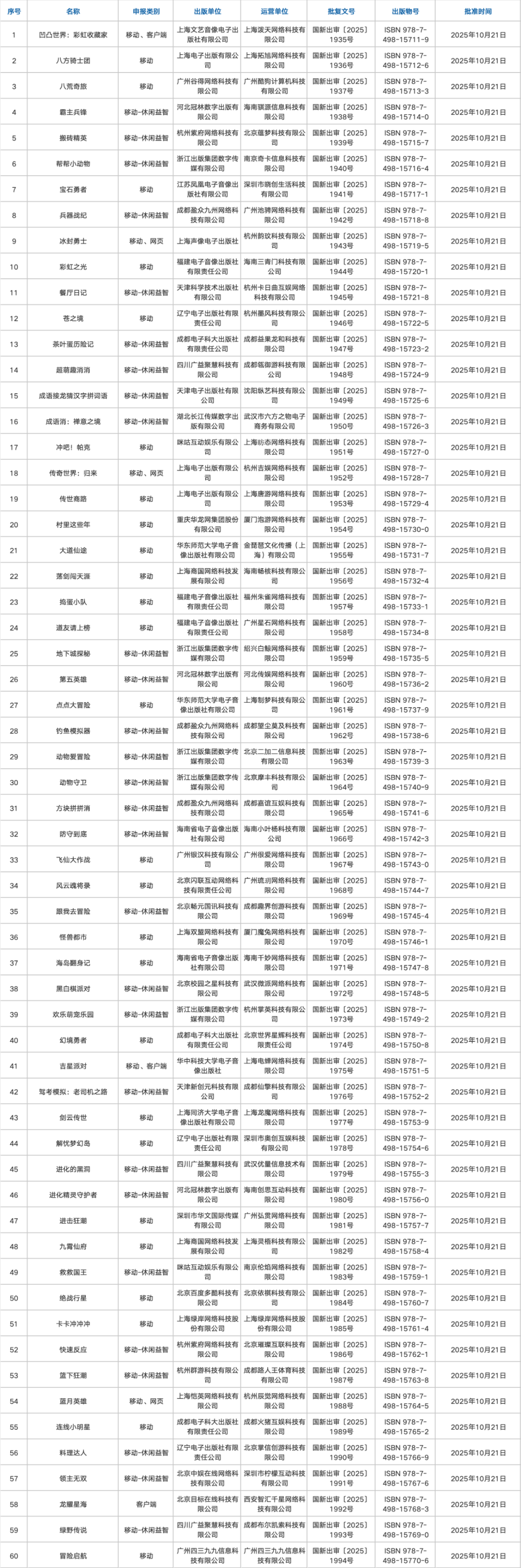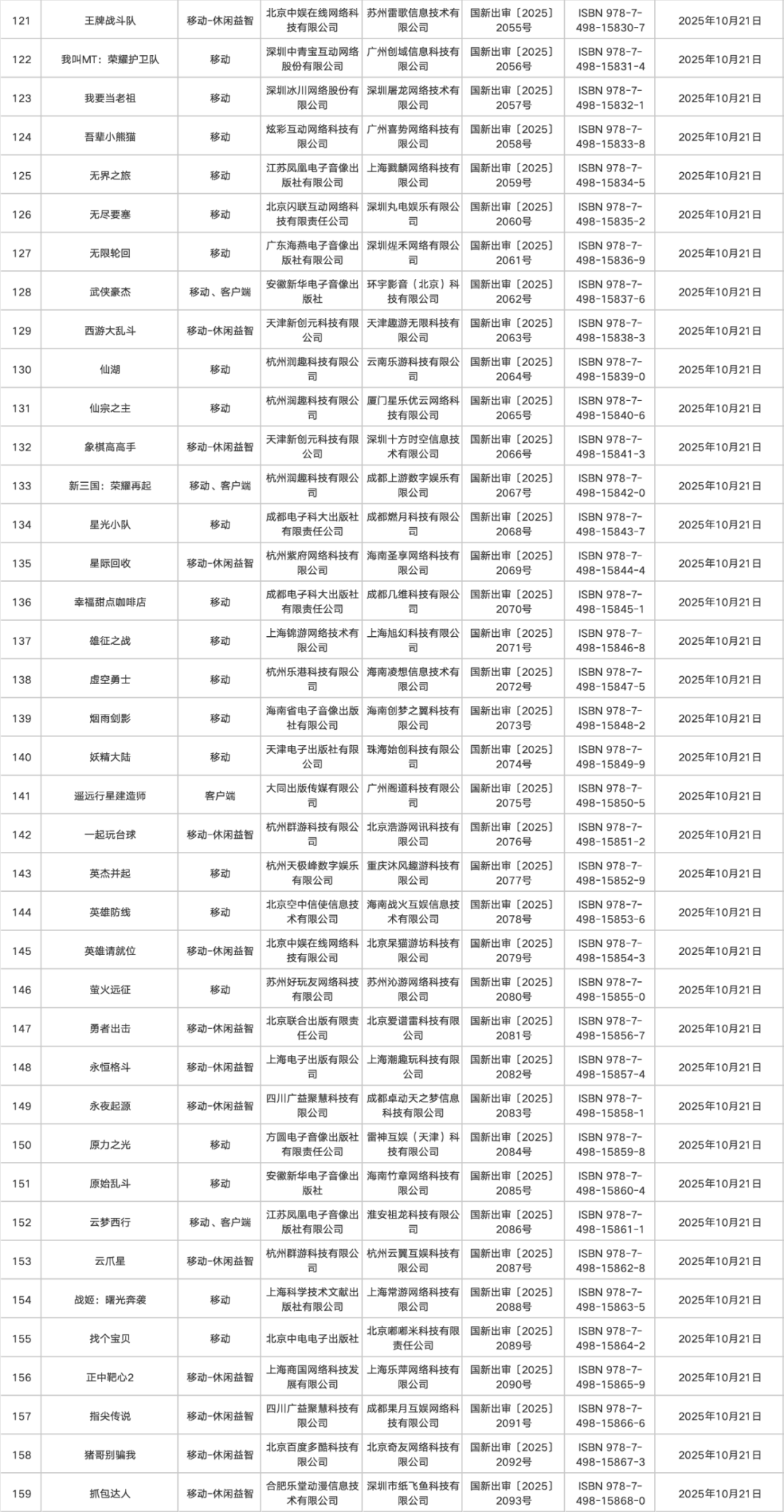 10月22日,国家新闻出版署官网发布了最新一批网络游戏版号名单。