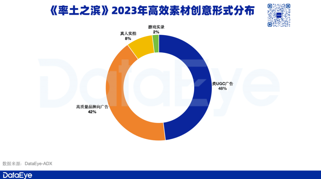 《率土之滨》2023年的高效TOP50视频创意,主要以“类UGC广告”为主,辅以“高质量品牌向广告”的素材表现形式。