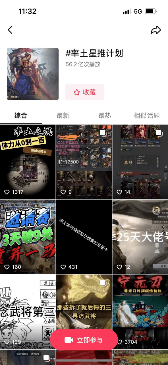 抖音显示,#率土星推计划#相关话题的播放量已经超过56亿次,总曝光量超500亿次。