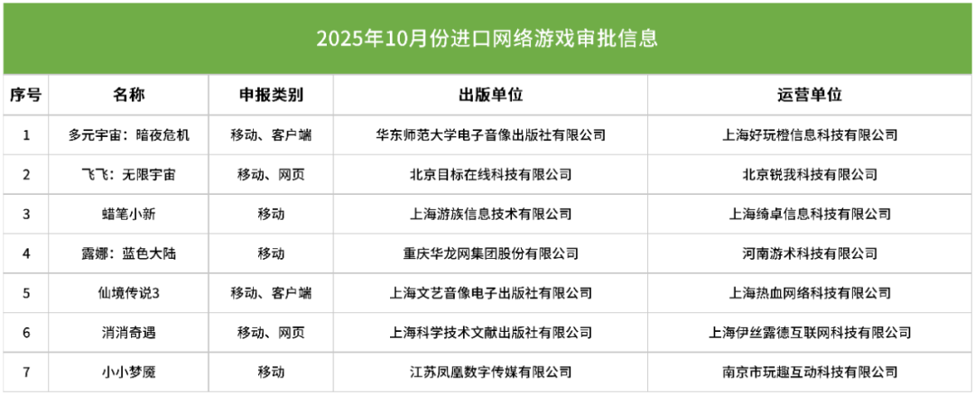 本批过审游戏的完整名单如下 (点击查看高清图):