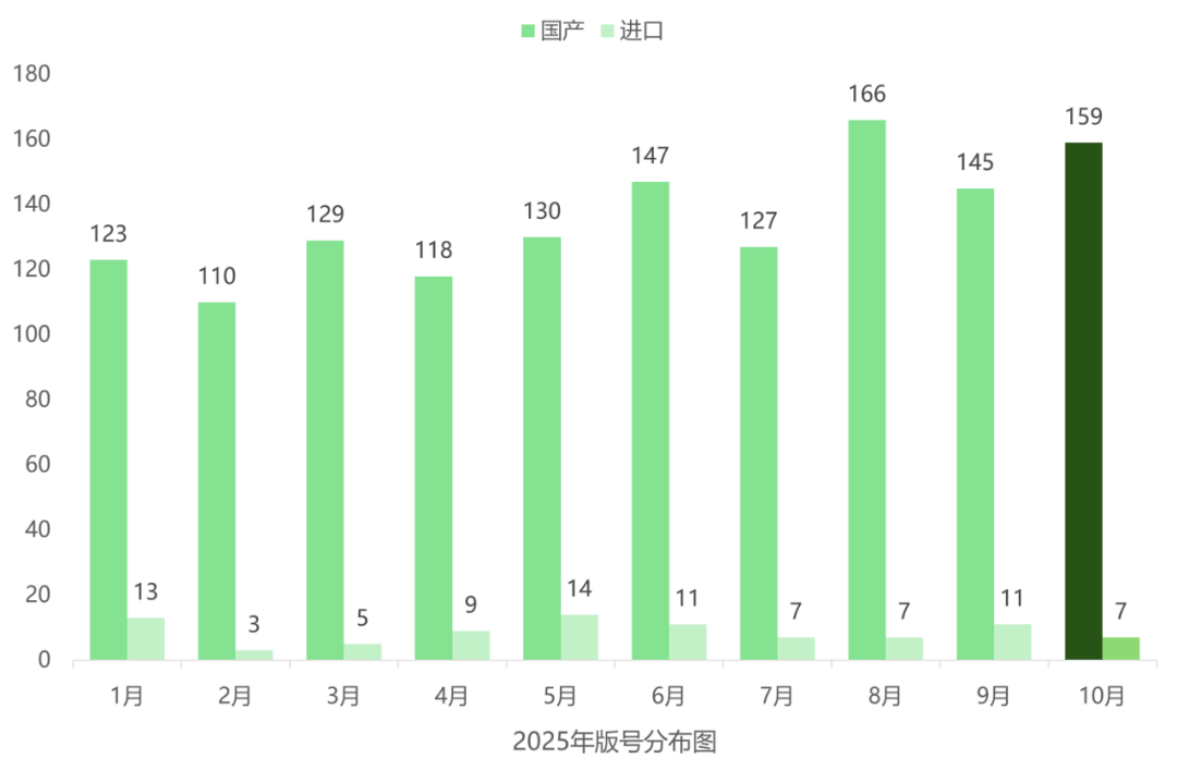 国家新闻出版署发布了2025年9月的国产游戏版号审批信息,这已经是连续12个月发布进口游戏版号,其中国产游戏版号数量159个;进口游戏版号7个,以及7个变更。