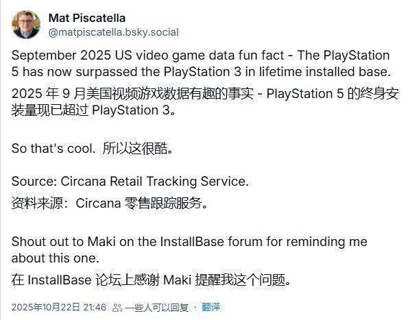 根据市场研究公司Circana的分析师Mat Piscatella在社交媒体上公布的信息,截至2025年9月,PS5在美国的销量已正式超越PS3。尽管未公布具体数字,但这一成就意味着PS5在上市不到五年的时间里,就在美国市场超越了PS3长达十年的销售积累。