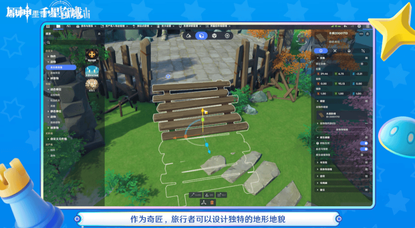 在这个新模式里,玩家能用游戏里的各种素材,通过简单的工具自己做地图、设计小游戏,比如PVP对战、解谜、大富翁等等,编辑器使用简单的可视化设计,不需要会编程就可以零基础制作游戏。