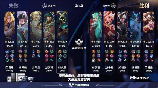 DRG已经三高被破,最后选择了用龙逼团,留花缘一个人带线。但WB明修栈道暗度陈仓,派梓墨和听悦牵制,实则三个人去抓花缘了。DRG第一时间想派人回城,但都被梓墨打断了,花缘顶不住三个人的伤害,最终WB23分钟拿下比赛,4-2晋级胜者组决赛。