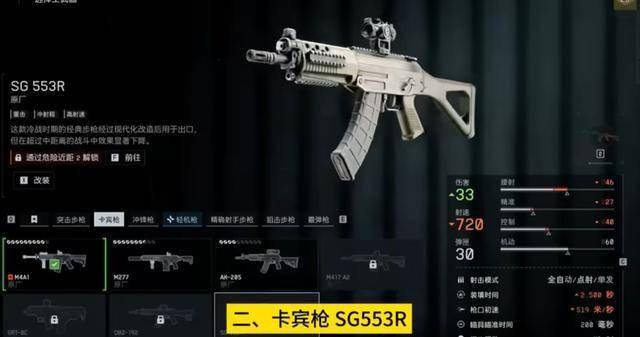 解锁条件:完成《危险近距2》任务,需要用QBZ/M277击杀100敌人,用卡宾枪完成300次爆头