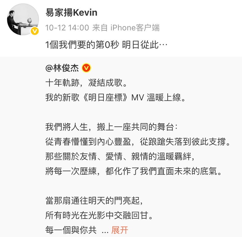 在《明日坐标》发布后不久,易家扬老师在微博留下了这样的文字:“1個我們要的第0秒 明日從此·”,茶馆才意识到,原来“10”的线索,一直在这首歌中流淌。