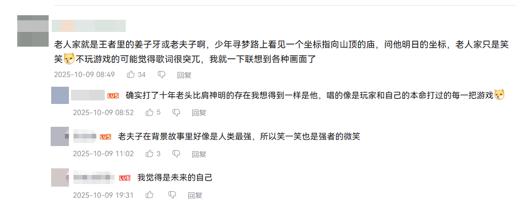 又比如,在“山顶的庙”“老人家只是笑笑”这些看似写意的词句中,不少玩家自然地联想到了老夫子、姜子牙等英雄的形象。这些角色在游戏中本就是智慧与从容的化身,歌词中那一抹超然与淡泊,恰好与他们的人设不谋而合。