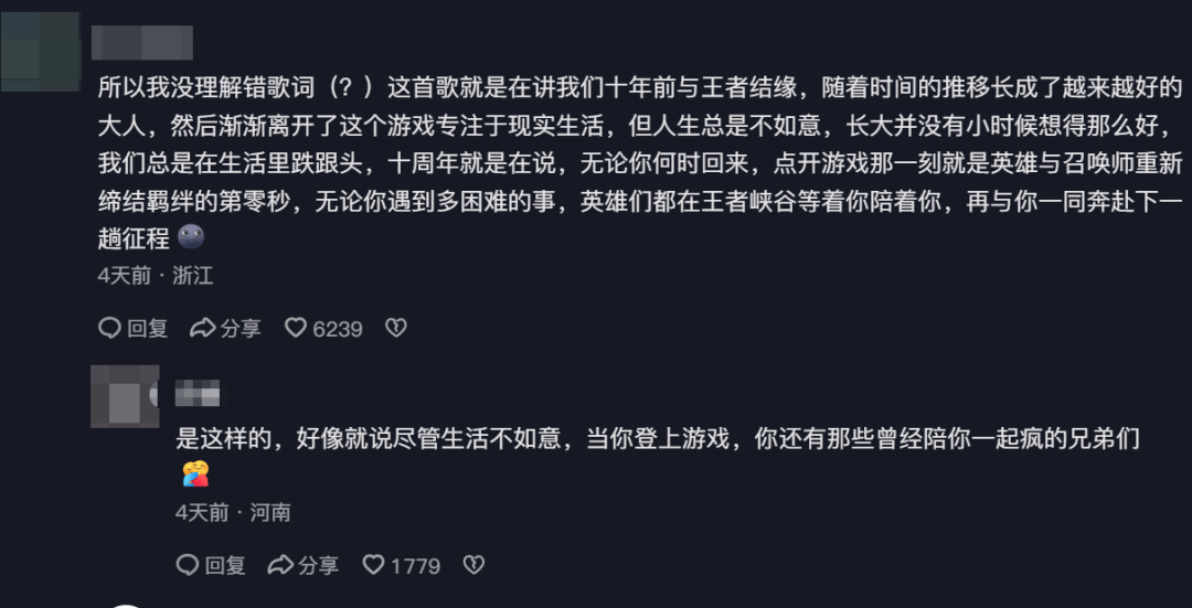 我们要先明确的是,作为《王者荣耀》牵头创作的合作曲,这首歌一定是写给无数陪伴《王者荣耀》走过十年岁月的玩家的,它的核心作用,是牵动起玩家们对于《王者荣耀》的深厚情感。
