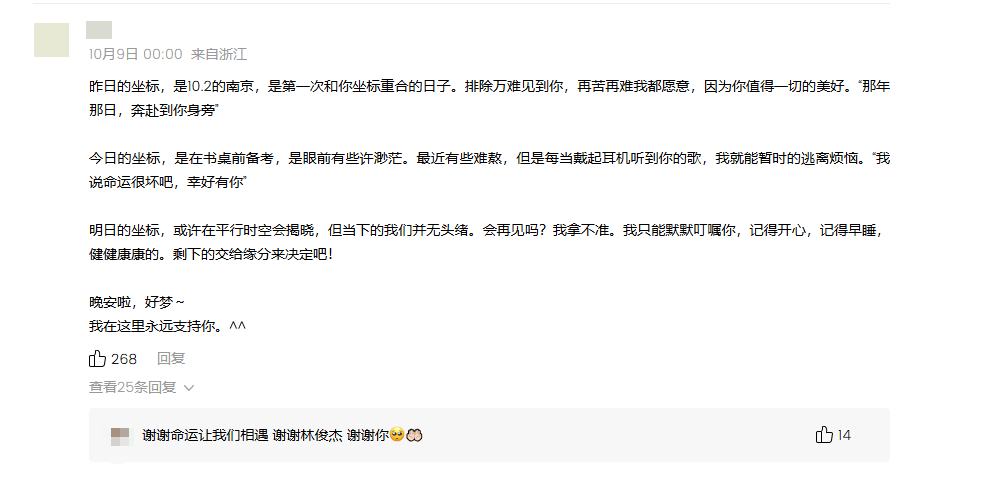 据腾讯音乐不完全统计,在短短十天内,《明日坐标》就在超过260家文旅官号作品中作为BGM登场,可以说,《明日坐标》与林俊杰,成了10月当之无愧的“文旅战歌”。