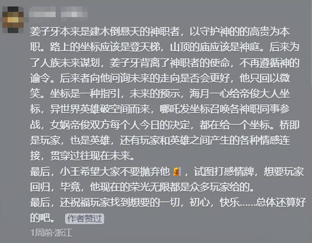 《明日坐标》,被一些玩家认为是借由某些英雄的故事所创作出的曲子,比如海月,玩家们从歌里听出了海月从诸神之战伊始,跨越千年,只为复活帝俊的执念。