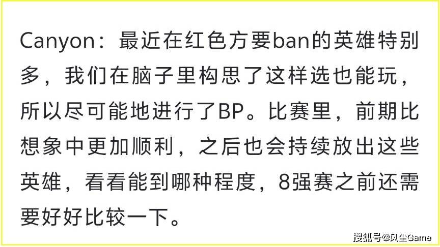 Canyon表示:后续的比赛,GEN也会放OP英雄,看看能放到什么程度,很明显,GEN是完全没把TES当作对手的,因为这种测试型BP,只有强队打弱队,才有足够的底气去尝试,Chovy对于这场BO3的看法,也跟观众们一样:我们认为能够战胜TES,但没预料到,会有这么大的差距。