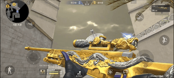 王者之力枪身主体采用王者专属的鎏金材质,金属光泽饱满且纹路细腻,与银色天龙造型形成经典金银撞色,枪托与枪管衔接处点缀的菱形纹路增强握持质感。