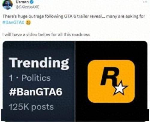 《GTA6》预告发布后,国外也涌现出一堆“道德斗士”,表示要禁止《GTA6》,并将相关话题短暂顶至推特热搜。