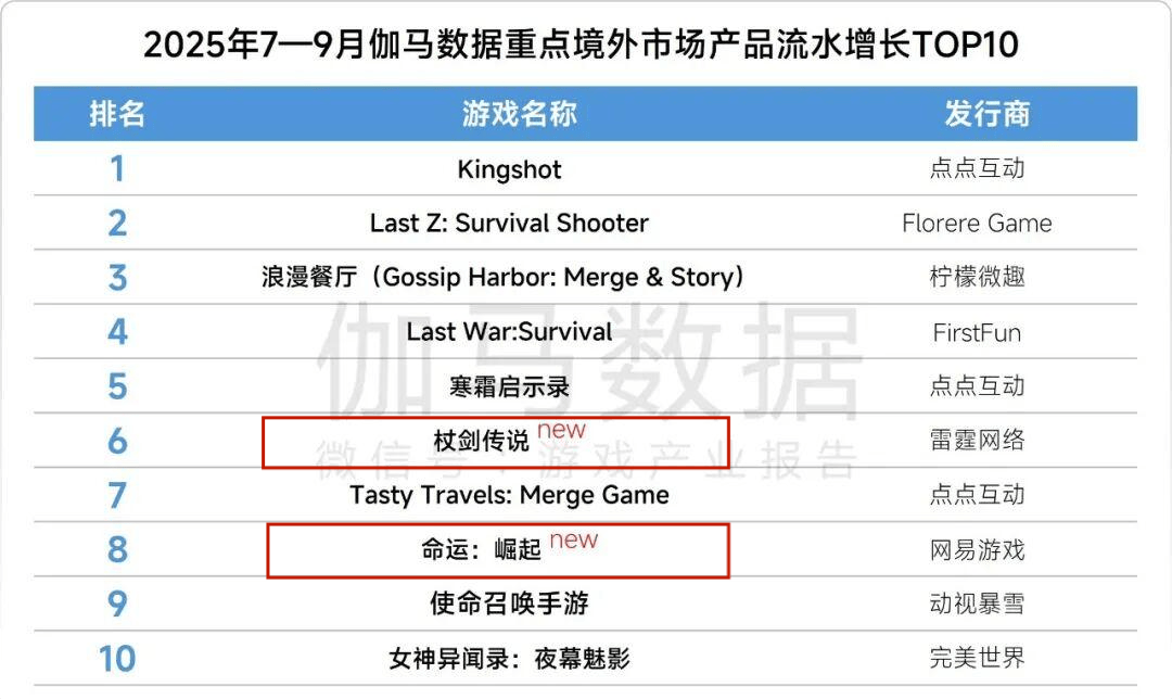 整体来看,出海市场依旧保持韧性,环比回升主要得益于多款重点产品的亮眼表现,尤其是《Kingshot》和《Last Z: Survival Shooter》两款策略类游戏,对整体增长贡献显著。